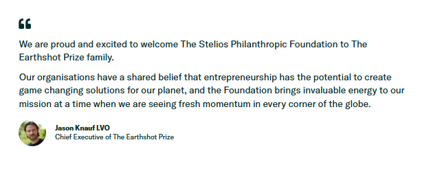 Today, the Stelios Philanthropic Foundation announces a strategic partnership with The Earthshot Prize – the world’s most prestigious and impactful environmental award.
